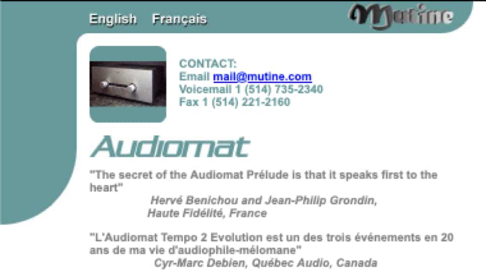 Mon site de l'été 2006 a été le plus gros site d'un distributeur hi-fi; il m’avait pris 9500 heures (une folie), et un investissement de 27.000 cad pour mon collègue développeur (que cet excès a épuisé autant que moi... il pensait "branding", ces sites de quelques pages, pour lesquels il a un talent que je considère exceptionnel, alors que je pensais "culture, information, partage"...); ses mises en page parfaites plus mon système de menus unique m'ont valu un appel des développeurs du site du musée du Louvre à Paris, me demandant de partager la technique ! Le "ton" du site était l'Art, qui m'intéresse toujours plus que la technique.
